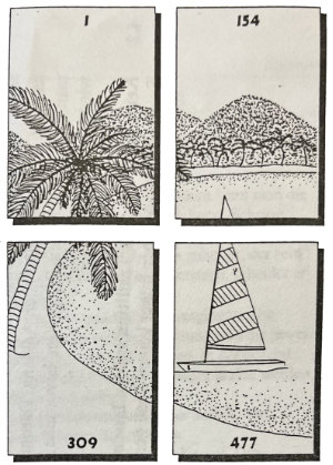 | Vorbereitung: | Benötigt werden pro Spieler etwa 10 Memorykarten. Die Memorykarten erstellt man, indem man große Landschafts- oder Personenbilder aus Reiseprospekten auf 21x30 cm (DIN A4)großer Pappe aufklebt und diese dann in 4 gleichgroße Teile schneidet. Anschließend müssen die Memorykarten so auf 4 Stapel verteilt werden, dass in keinem Stapel Memorykarten des gleichen Bildes vorhanden sind. Zusätzlich muß darauf geachtet werden dass zusammengehörende Memorykarten in jedem Stapel in der gleichen Reihenfolge liegen. Damit nicht ein Mitarbeiter versehentlich die Memorykarten in verkehrter Reihenfolge herausgibt, ist es sinnvoll die Memorykarten durchzunummerieren. Jeder Stapel sollte für sich durchnummeriert werden, wobei jeweils mit einer anderen Zahl angefangen wird. Dadurch wird ausgeschlossen, dass sich die Spieler anhand der Nummern suchen, anstatt nach den Bildern. Die Mitarbeiter geben dann später nach dieser Reihenfolge die Memorykarten wieder aus. |